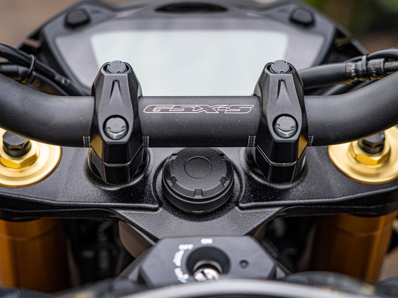Inherited directly from a GSX-R supersport machine, the powerful 749cm3 four-cylinder fuel-injected engine is specially tuned and refined to maximize its potential on the streets and on winding roads. Cutting-edge technologies from the legendary GSX-R series control engine management. The downdraft double-barrel Suzuki Dual Throttle Valve (SDTV) system ensures efficient combustion and smooth, highly controllable power delivery throughout the engine’s broad power range. Suzuki’s digital ignition system, Idle Speed Control (ISC) and the use of iridium spark plugs contribute to linear throttle response, greater low-end torque production, easier engine startup, lower cold-start emissions, and more stable-idling.