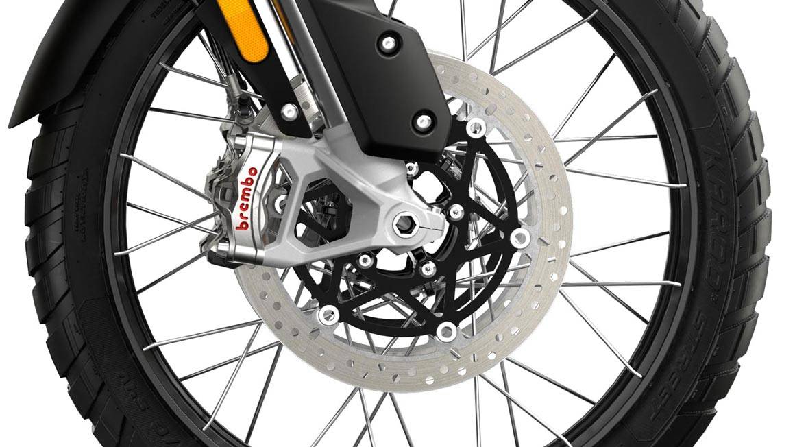Capacity: 1,160 cc Rear brake: Brembo single piston caliper, OC-ABS, single 282mm disc. Rear master cylinder with remote reservoir.