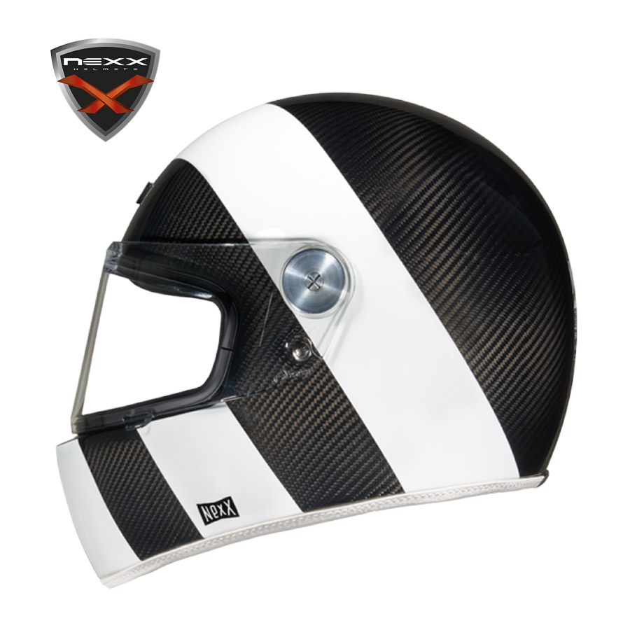 Seventies styling meets modern comfort, materials and construction. The XG100 Racer only looks vintage. Underneath that premium paint lies a carbon composite exterior shell and a plushly lined interior. The shield closes with a firm detent and wears spun aluminum pivot hardware.