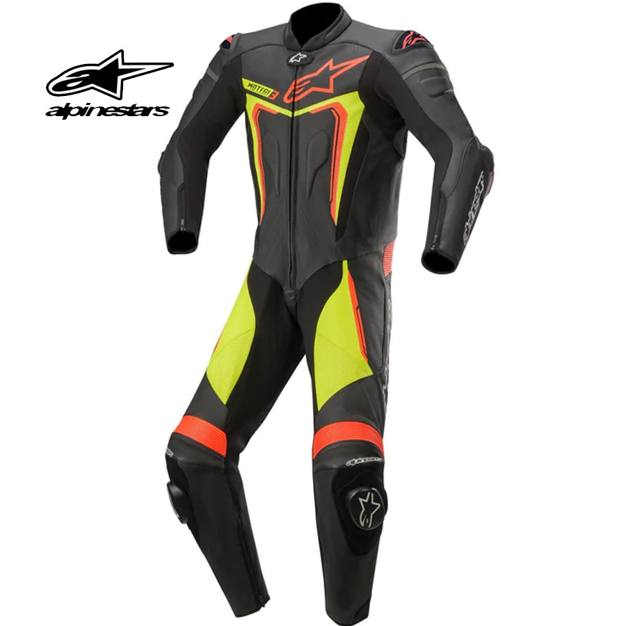 The Motegi V3 boasts a 1.3mm premium bovine leather construction for superior levels of abrasion resistance with limb protectors and strategical-ly-placed accordion stretch gussets and stretch fabric panels on the side of the body to allow for an optimized fit and maximum rider mobility on the motorcycle. Other neat touches include strategically localized perforations on the torso and arms for maximum airflow and ventilation, a removable mesh liner for convenience, and an ergonomically profiled back hump for stability and performance at speed. Can be upgraded with the Alpinestars Nucleon chest and back armor.